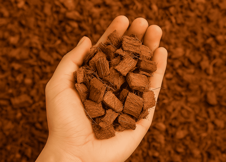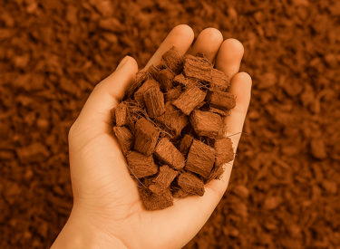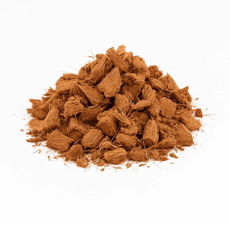 Coarse chunks of coconut husk used for mixing into soil or as decorative mulch. Helps improve drainage and keeps plant roots well-aerated.